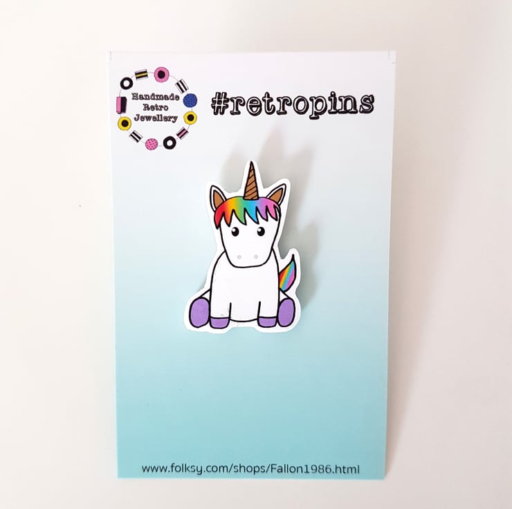 This listing is for one Unicorn style pin. Other pins are also available in the Retropins collection