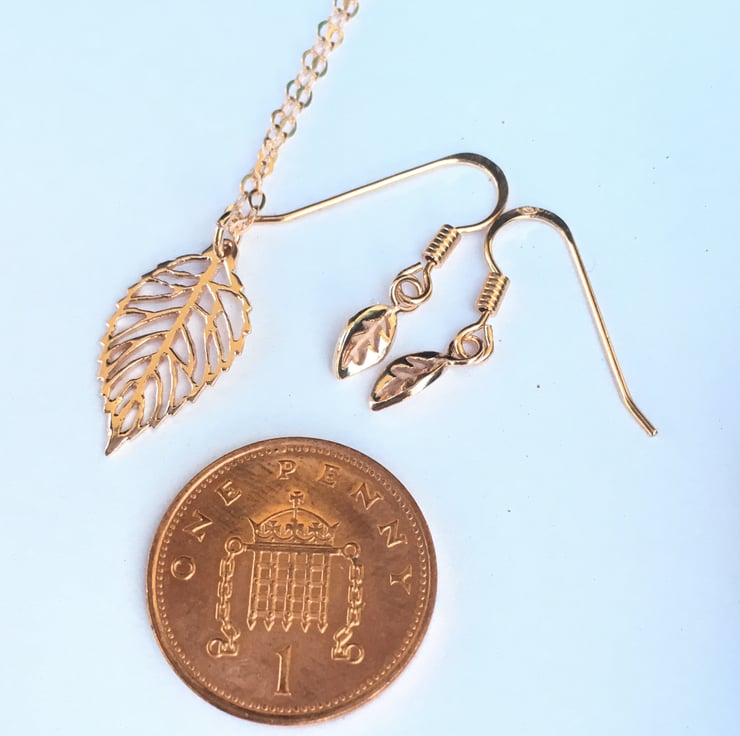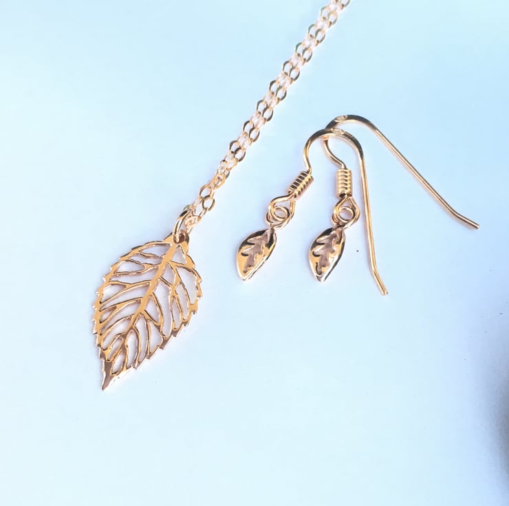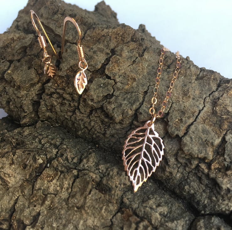 Rose gold Vermeil drop earrings (rose gold plating over solid sterling silver) Earrings, and matching leaf pendant