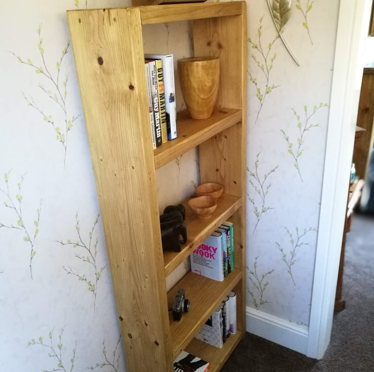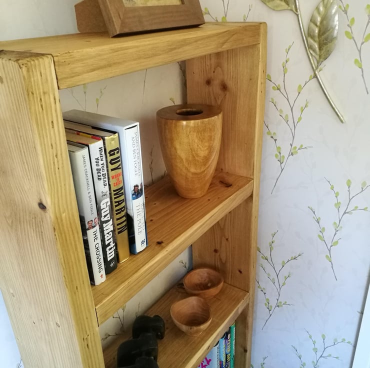 A beautiful handmade chunky rustic bookcase finished in Briwax Rustic Pine.