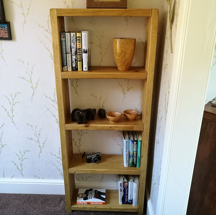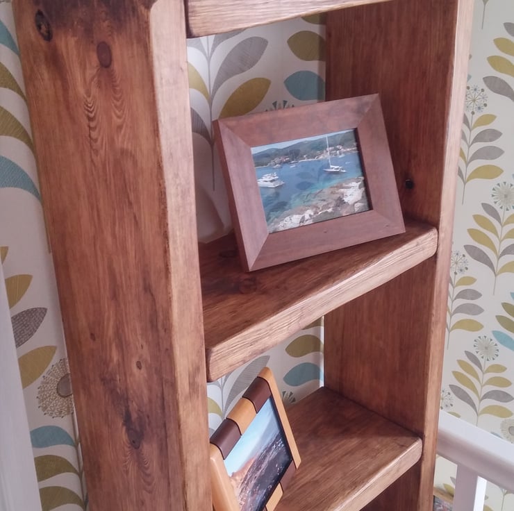 A beautiful handmade chunky rustic bookcase finished in Briwax Rustic Pine.