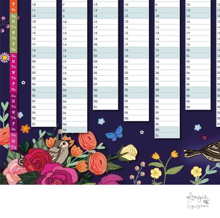 This calendar is printed on smooth 200gsm matt paper and comes rolled inside a mailing tube.