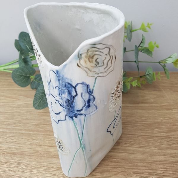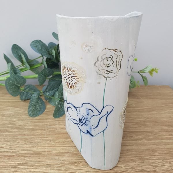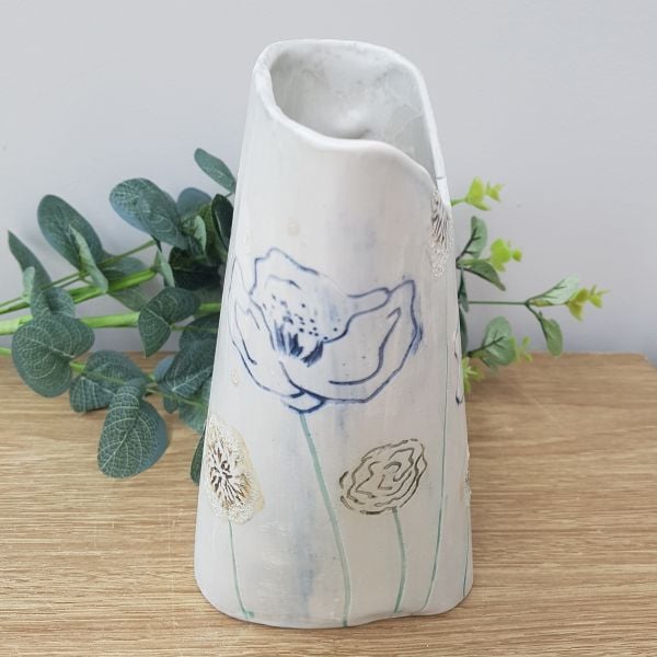 Handmade in my studio, this one-off vase measures approx 20cm high and is suitable for holding water and real flowers.