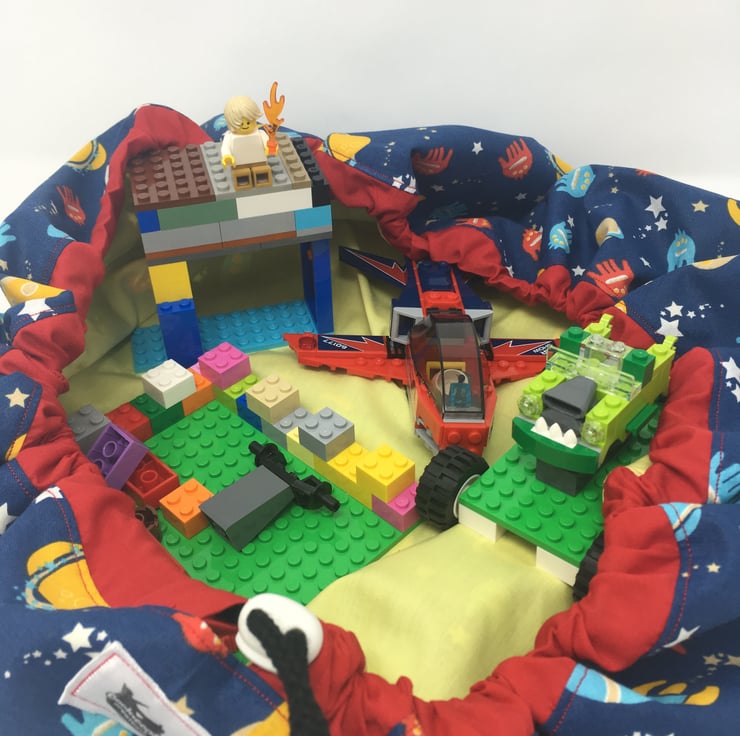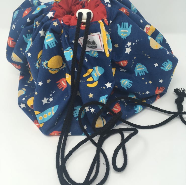 Keep your child's room tidy with this handy reversible, drawstring storage bag. It opens out completely flat allowing your child to use it as a playmat, then, leaving the toys on it, pull the drawstring to gather it all up into one neat bag. Wrap the string around the neck of the bag to secure. It's perfect for taking on holiday too. Ideal for smaller toys such as Lego, building blocks, cars, Tranformers, etc.