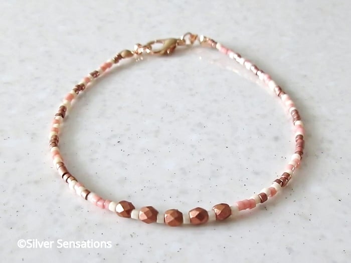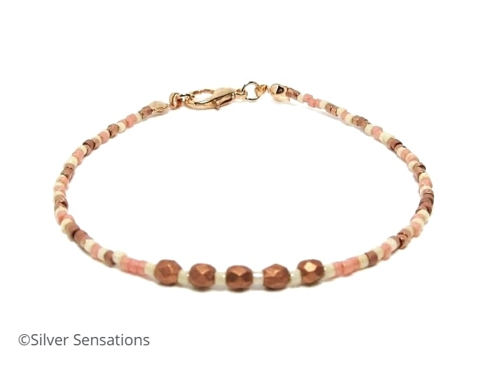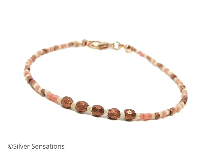 A peach & copper seed bead stacking bracelet in pretty pastel shades.