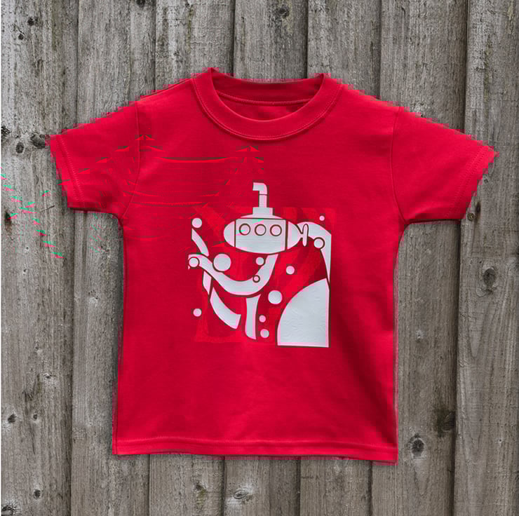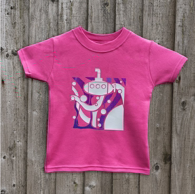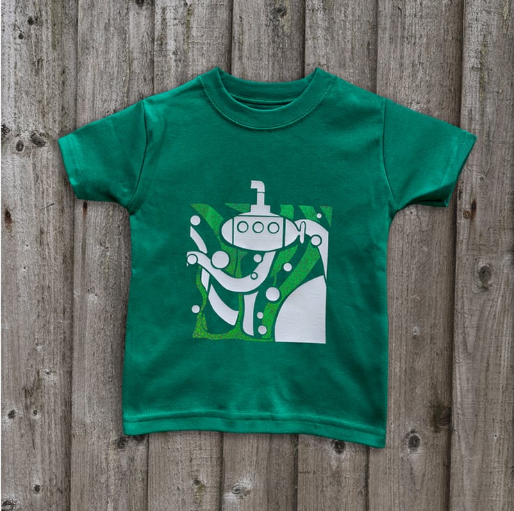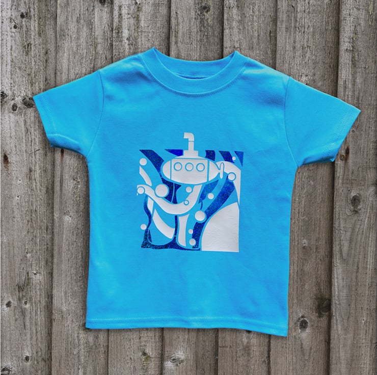 Our Submarine tee is made to order in soft cotton, and comes in a range of seven colours - red, cerise, turquoise, navy, emerald green, purple and maroon.