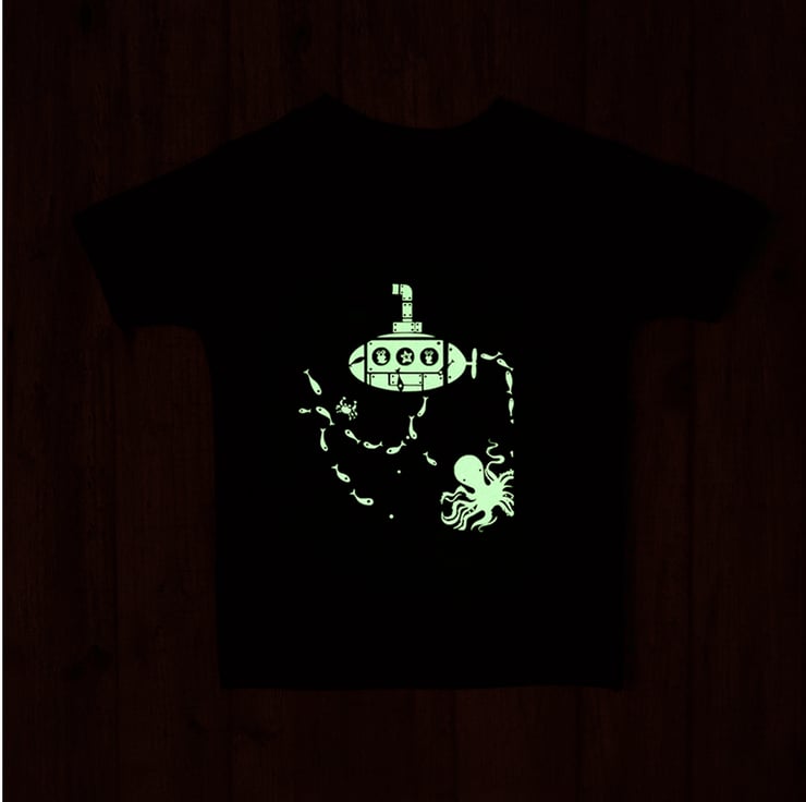 At his suggestion, we made unicorn glow tees, as well as dinosaurs, robots, submarines and angry looking cars, all with glow in the dark features.