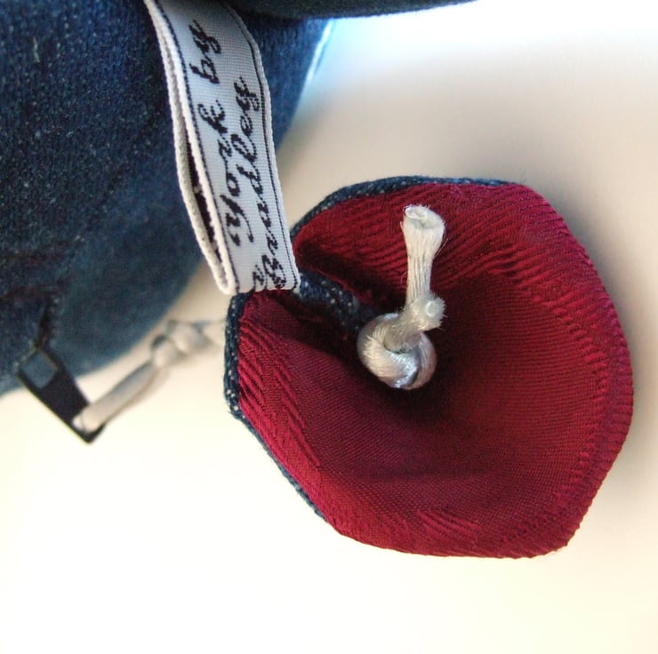 There is a 25cm blue zip fastening, with a denim flower head pull.