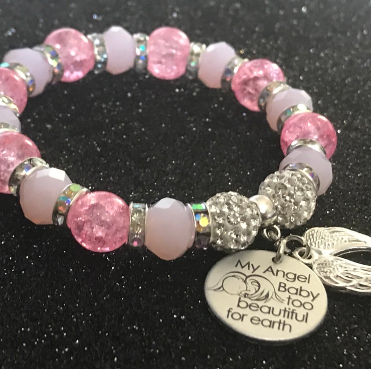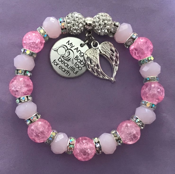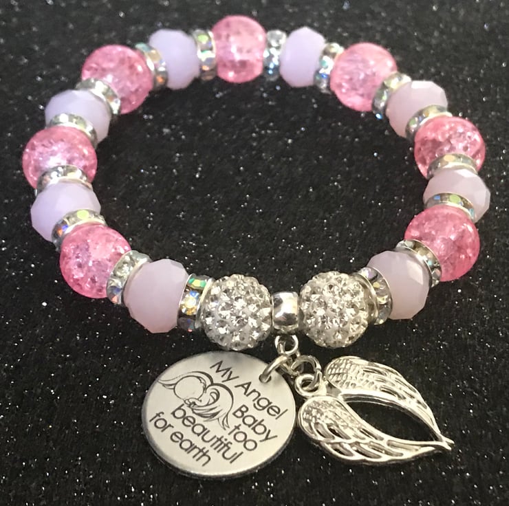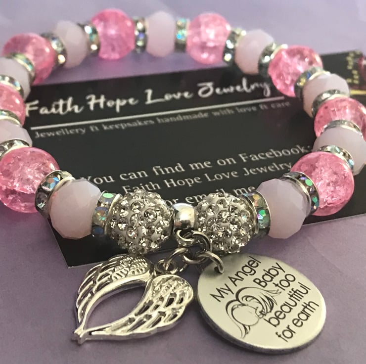 Super Sparkly Shamballa Pink Angel Baby Bracelet .