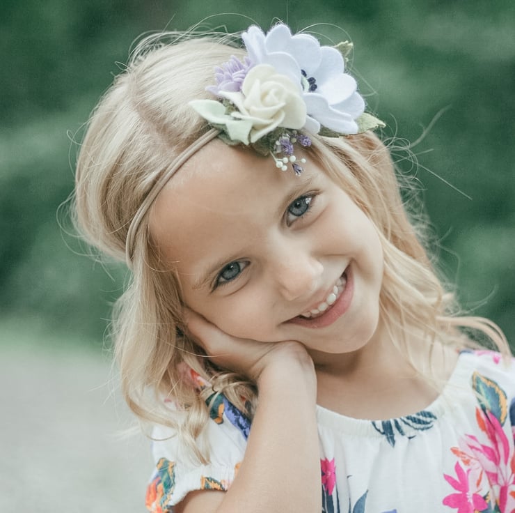 The nylon headband is very stretchy and will not mark your childs head. The headband is perfect for professional newborn baby photos, flower girl accessories or for a special occasion.