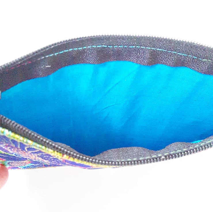 This is a handmade machine stitched fabric purse