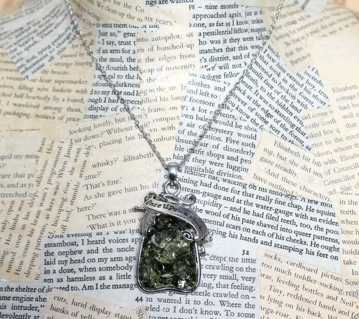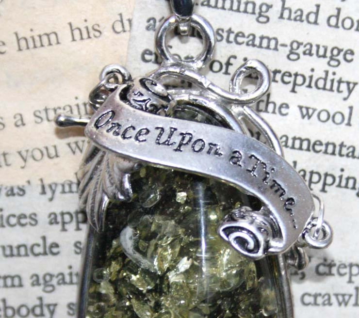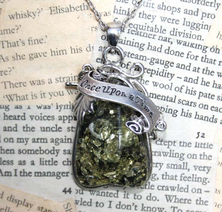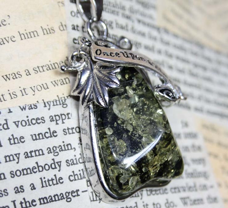 This pendant instantly spoke to me with its fluid shape, crackle effect faux amber and autumn leaves. It took me to a world of fantasy, of fairy tales, of adventures awaiting on the other side of our dreams. The 'once upon a time' scroll charm in Tibetan silver is the perfect addition to this, inviting you on a journey into the unknown where imagination is the only limitation.