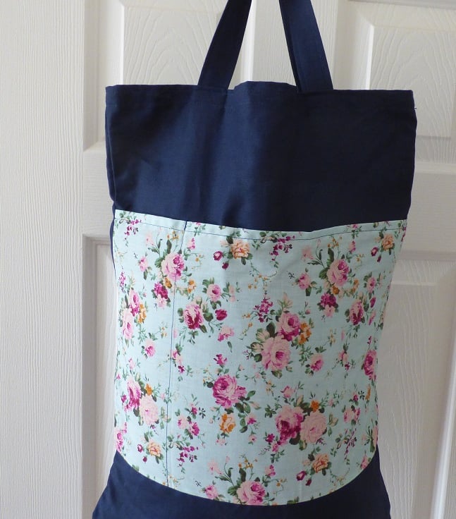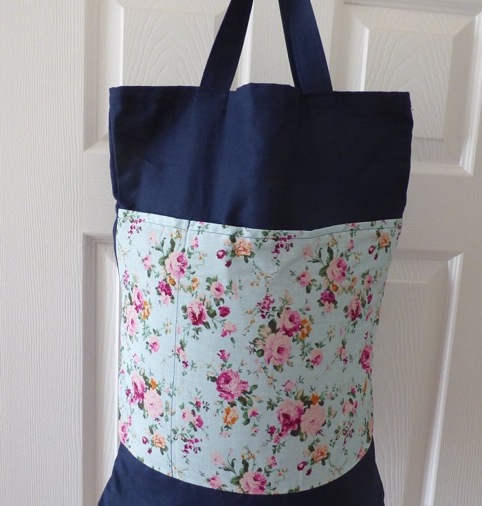I love the vintage floral prints we can buy in shops nowadays, and with our interest in looking after the environment I have created a blue floral tote bag, ideal for shopping trips.