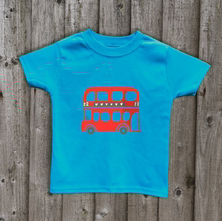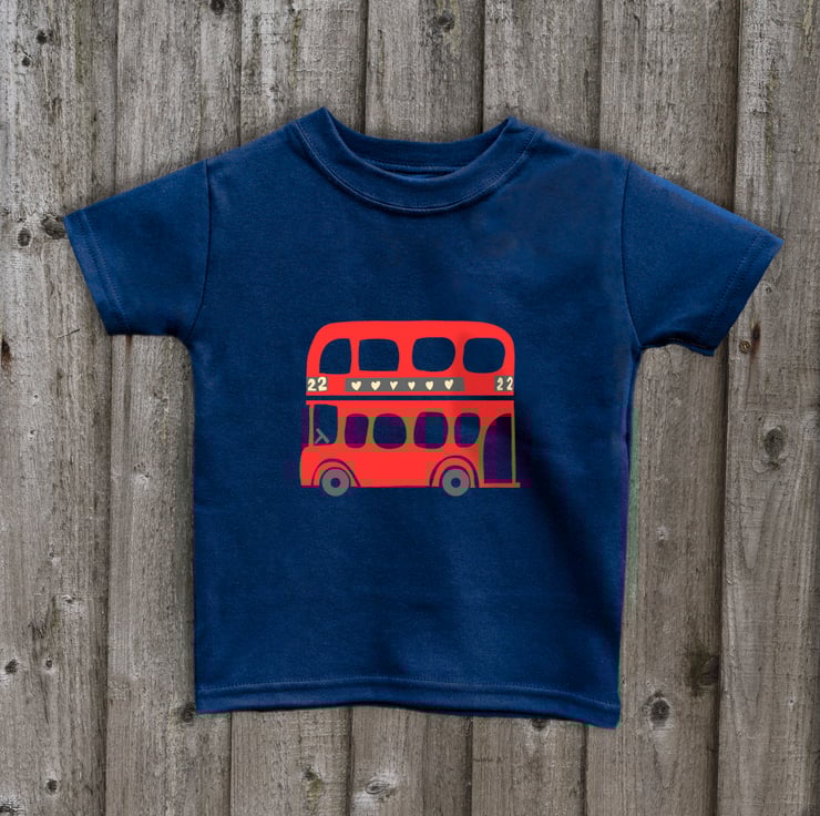 Our Bus t shirt is made to order in soft cotton, and comes in a range of colours - red, cerise, turquoise, navy, emerald green, purple and maroon.