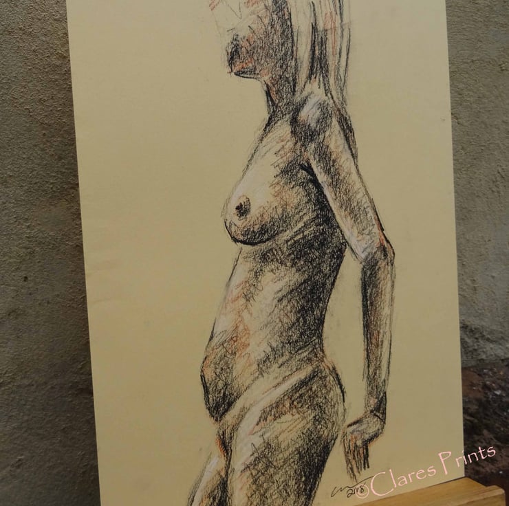 Approx size 21 x 30cm (8 x 11.5 inches). Drawn from a recent life modelling session.