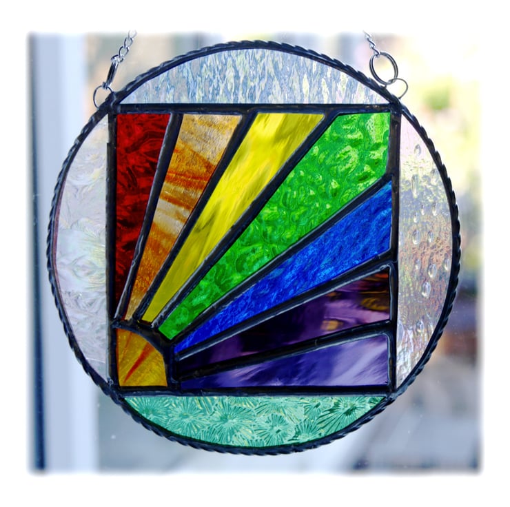 This is beautifully bright and cheerful and casts lovely colours when it hangs in the light of a window.