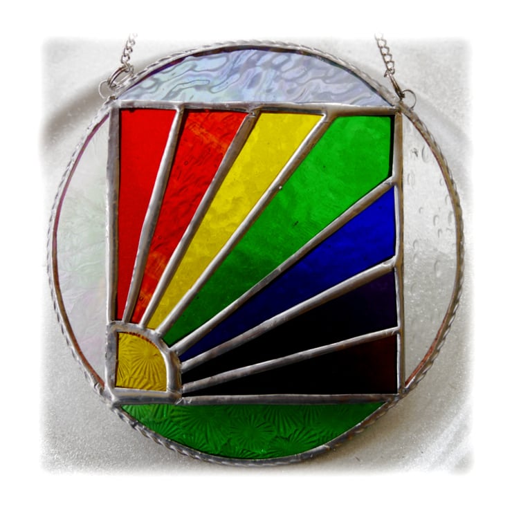 This is a stained glass suncatcher made using the Tiffany copper foil technique.