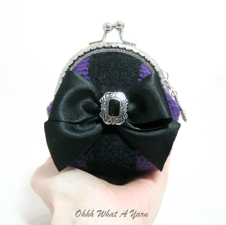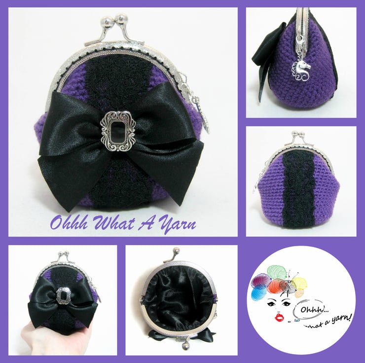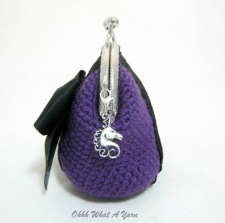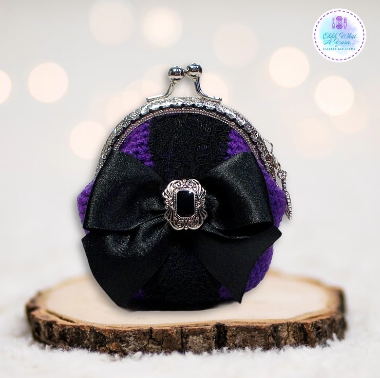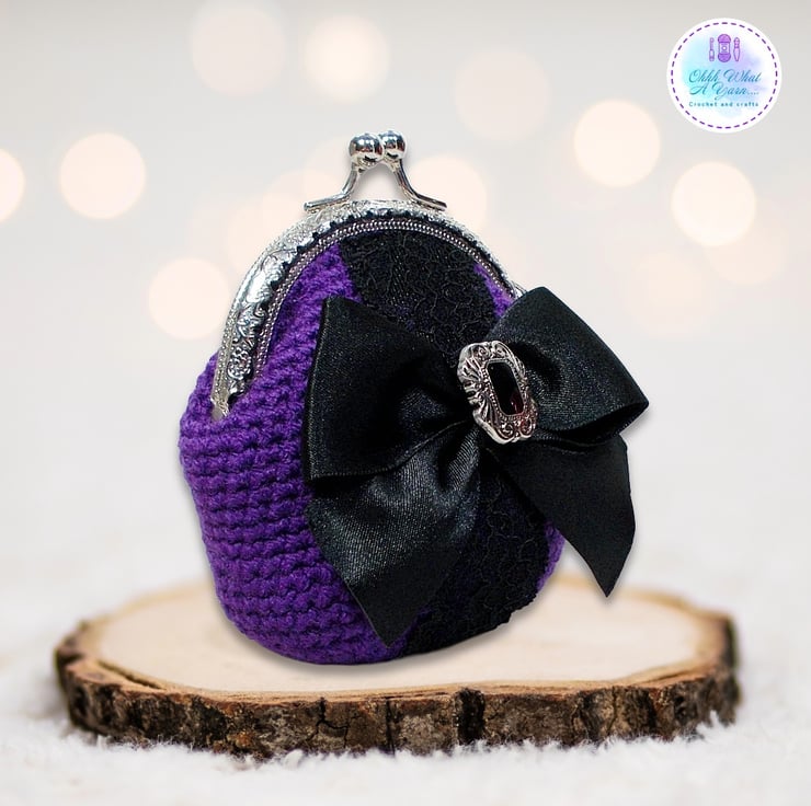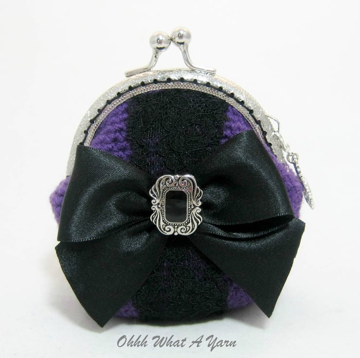 Crochet purple Gothic style coin purse. This pretty purse is crocheted using 100% acrylic yarns.