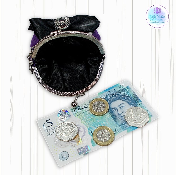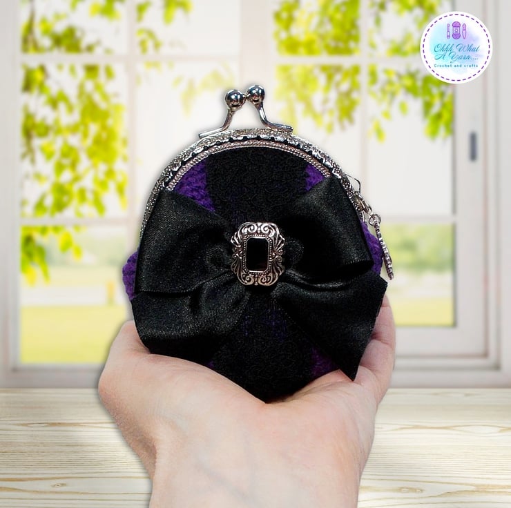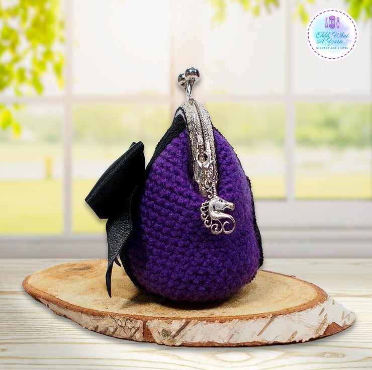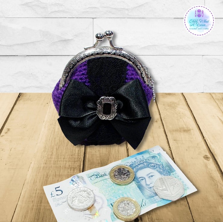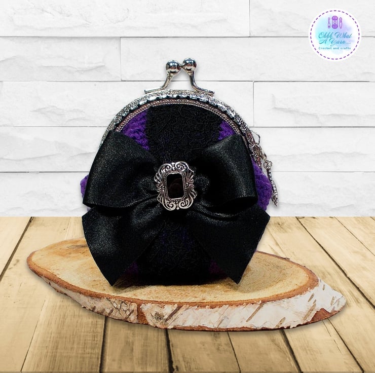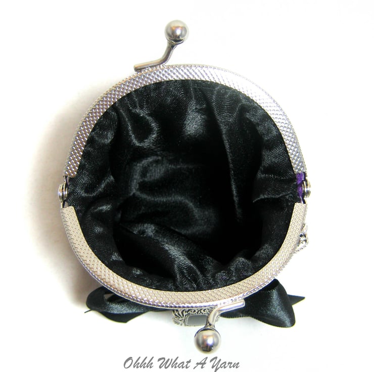 Crochet purple Gothic style coin purse. This pretty purse is crocheted using 100% acrylic yarns.