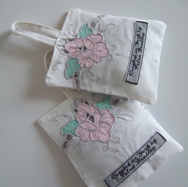 Lavender bag made from pastel vintage embroidery, with Yorkshire lavender.