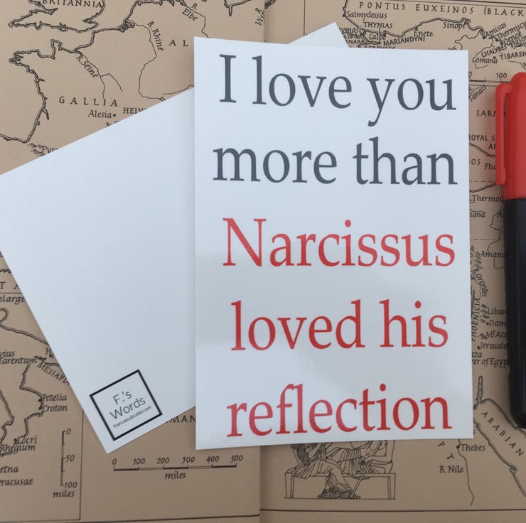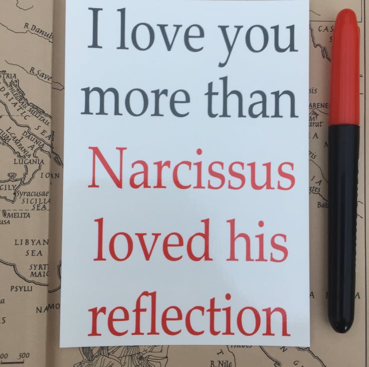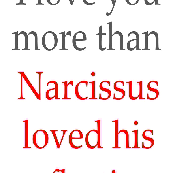 Print reads 'I Love You More Than Narcissus Loves His Reflection'.