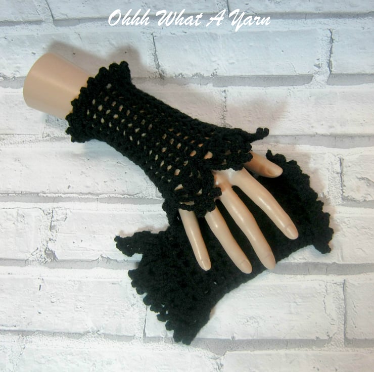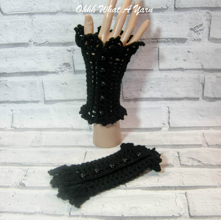Crochet fingerless gloves, steampunk gloves, lace gloves, mesh gloves, goth gloves, crochet cuffs, goth cuffs, wrist warmers, Victoriana gloves,