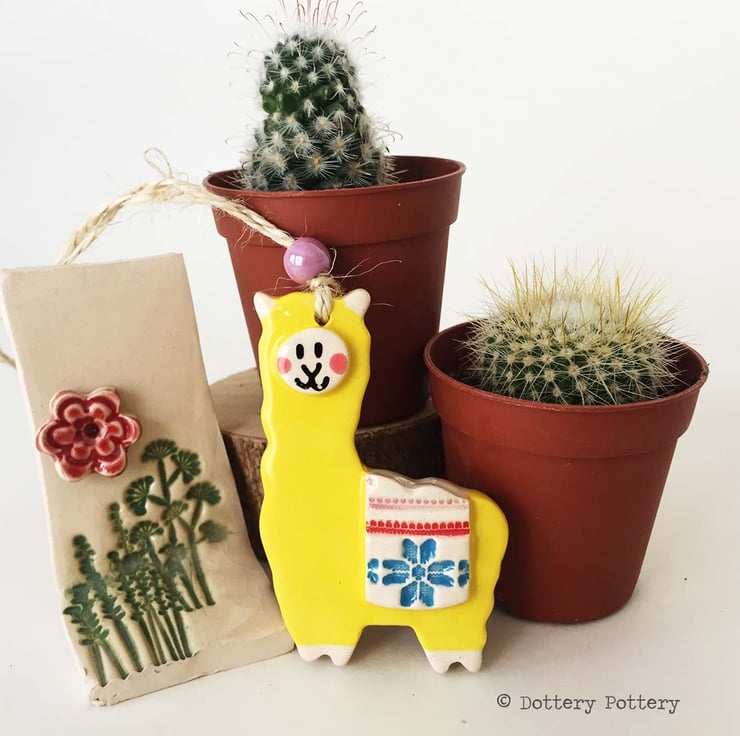 Pottery llama hanging decoration ceramic llama drama llama Alpaca pottery alpaca
