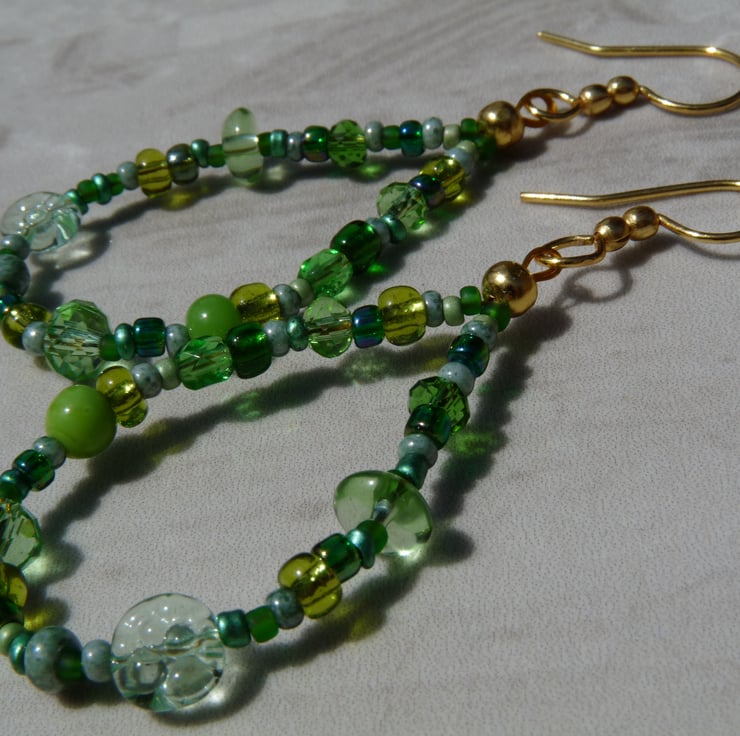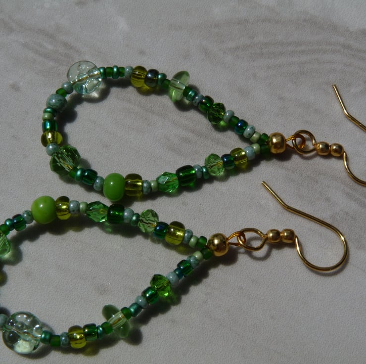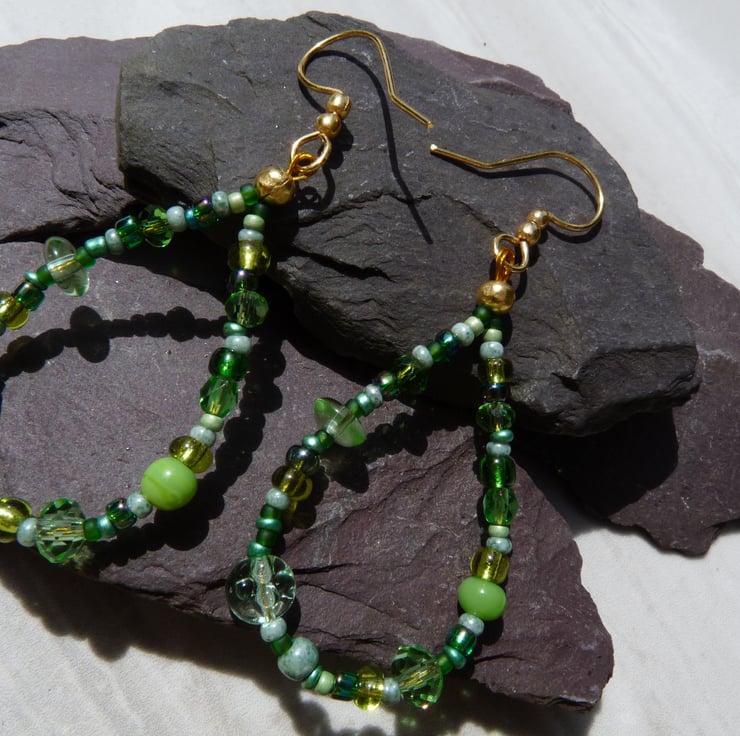 Green Beaded Hoop Earrings, Boho Festival Earrings