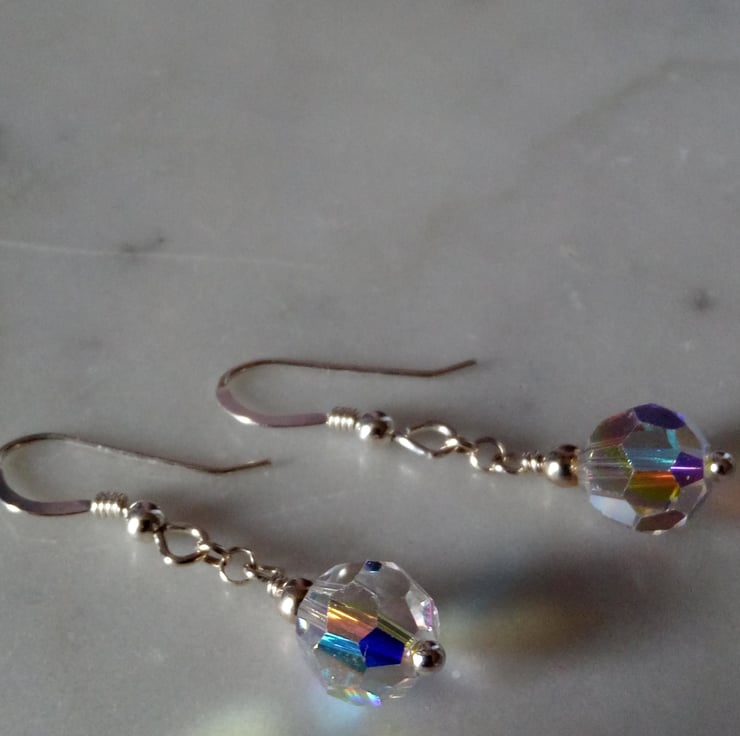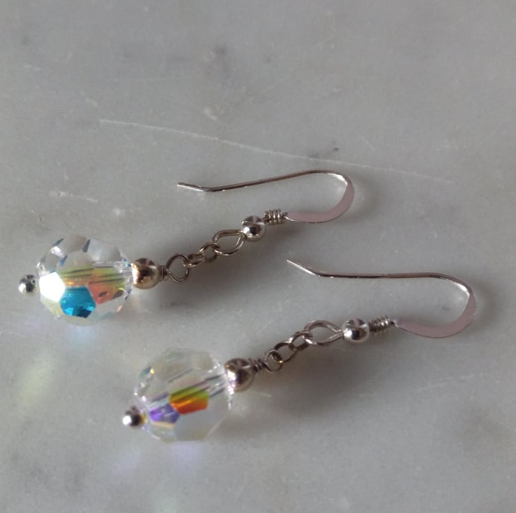 SWAROVSKI CRYSTAL AB 8MM HANGING FROM STERLING SILVER EARWIRES