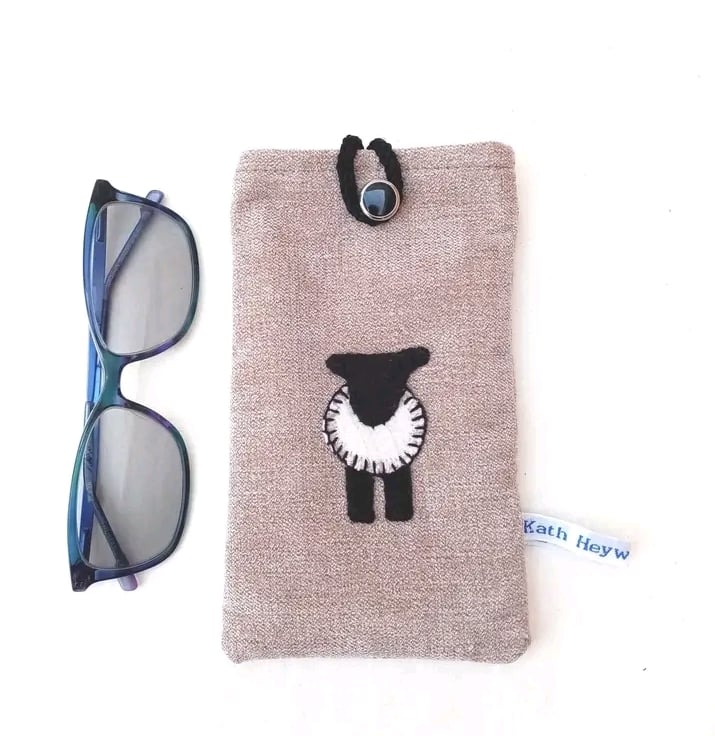 Embellished with my sheep applique design this case makes a lovely one of a kind gift for people who love sheep.