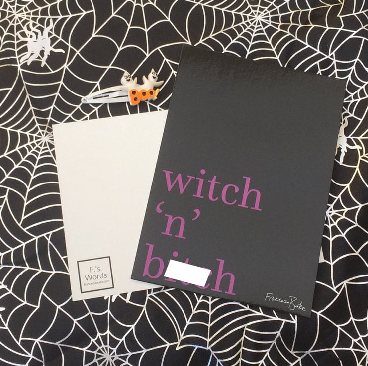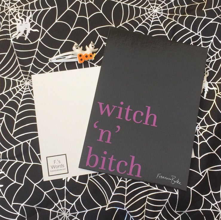 Witch 'n' bitch: like stitch 'n' bitch, but with pentagrams. Either use this print as a Halloween decoration, pop a stamp and address on the back and mail it to a friend or just put it up in your house year-round! Please note two sizes are available: A6 or 5x7". The price differs slightly for each size!