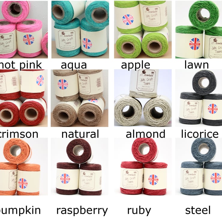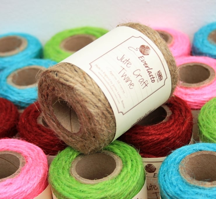 This biodegradable twine is a coarse and colourful jute twine. It comes on a cardboard tubewhich has approximately 50m on it.