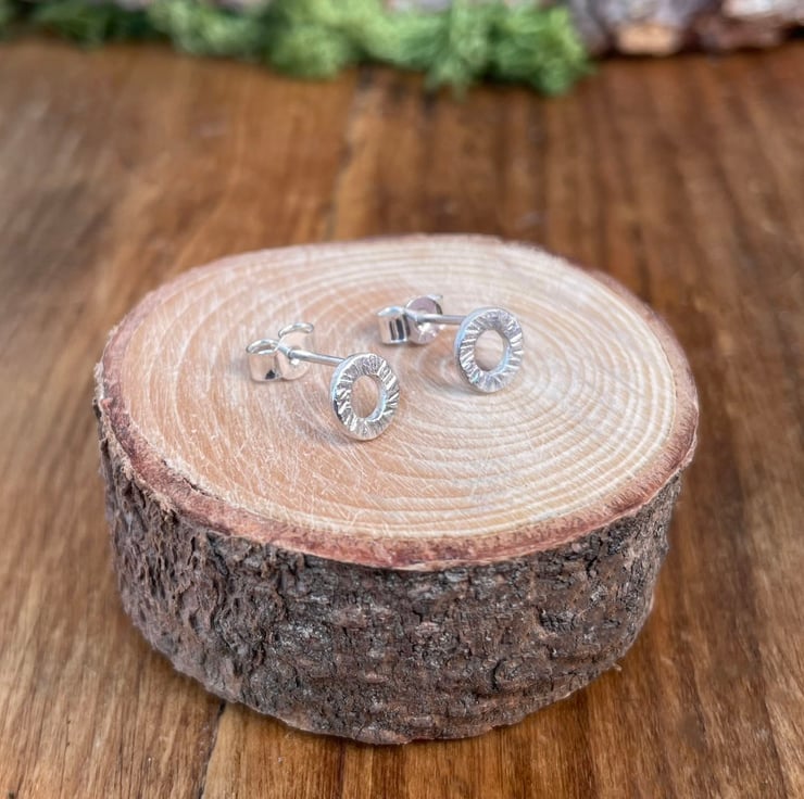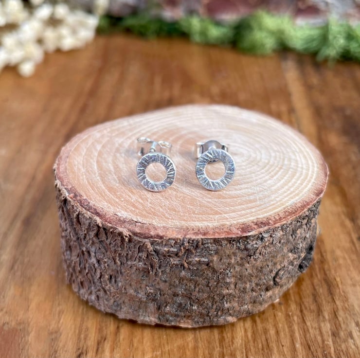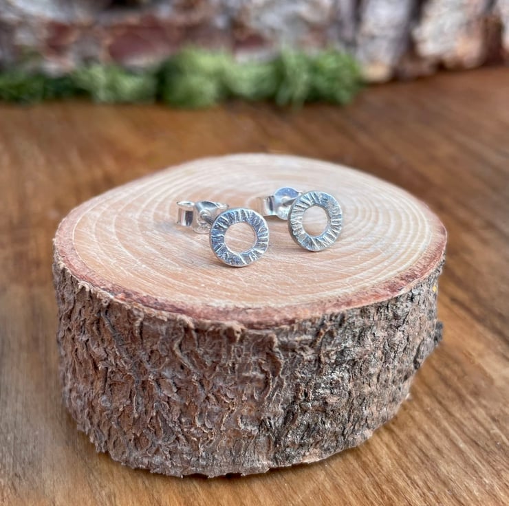 Handmade Silver Tree Bark Stud Earrings