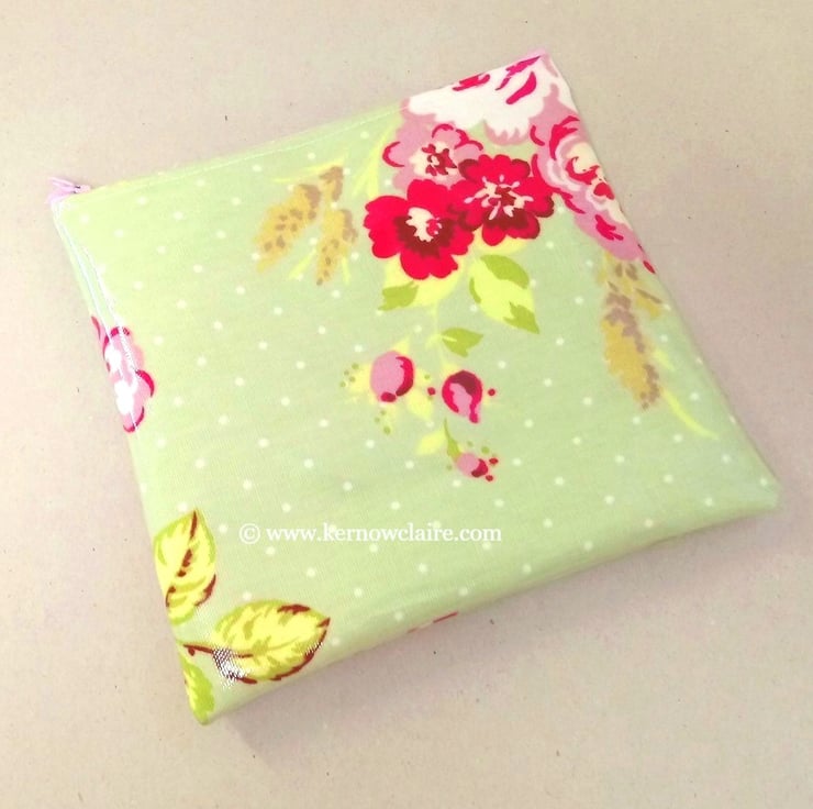 Pale green with pink flowers and a matching pink zip