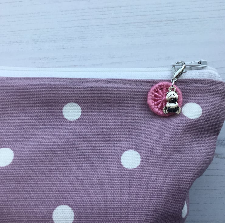 It has been fastened together with a cute white metal teddy bear charm to a small lobster claw catch to enable it to be attached easily to a bag, zip, spiral bound journal or notebook.