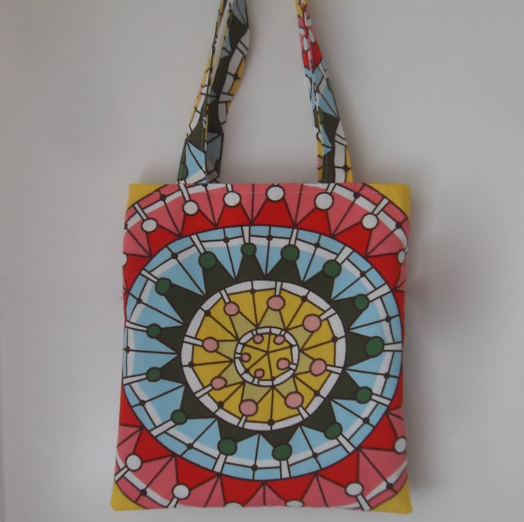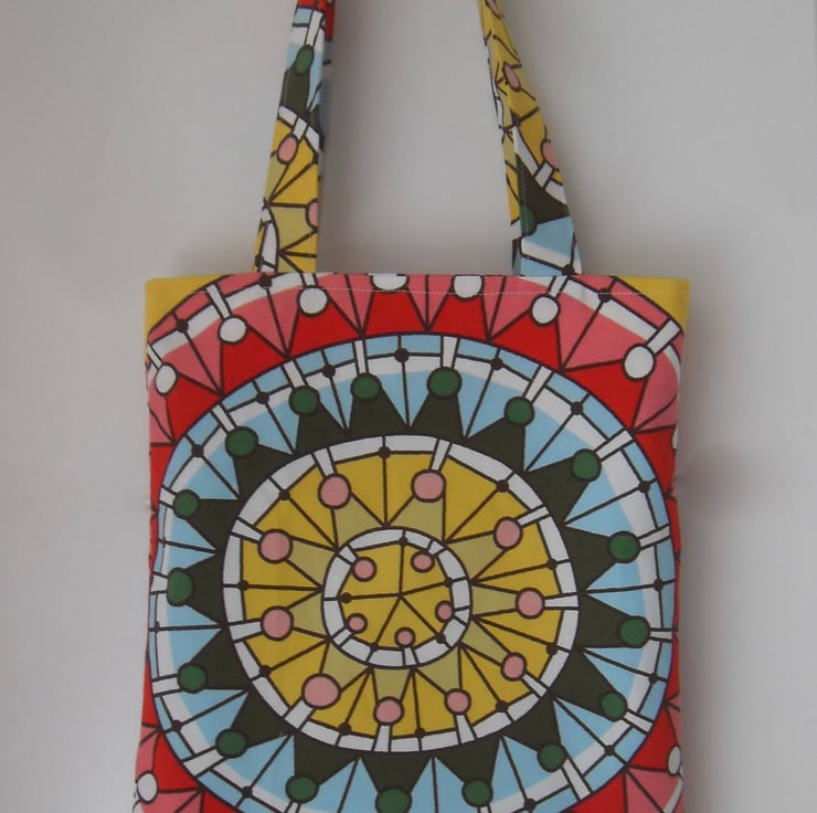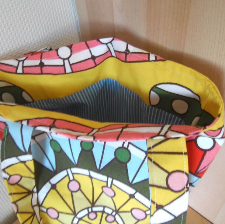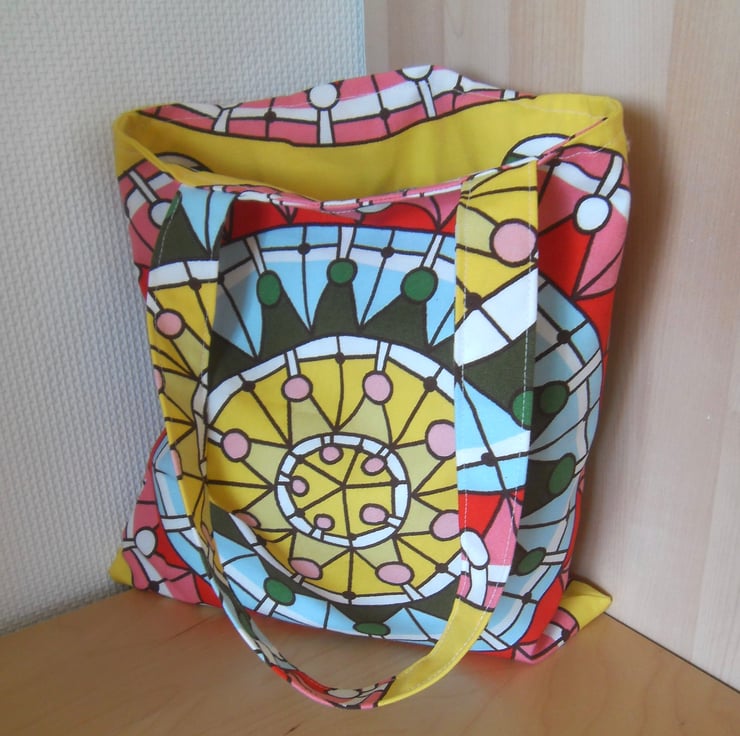 A basic tote bag made using a brightly coloured strong cotton fabric from Ikea.