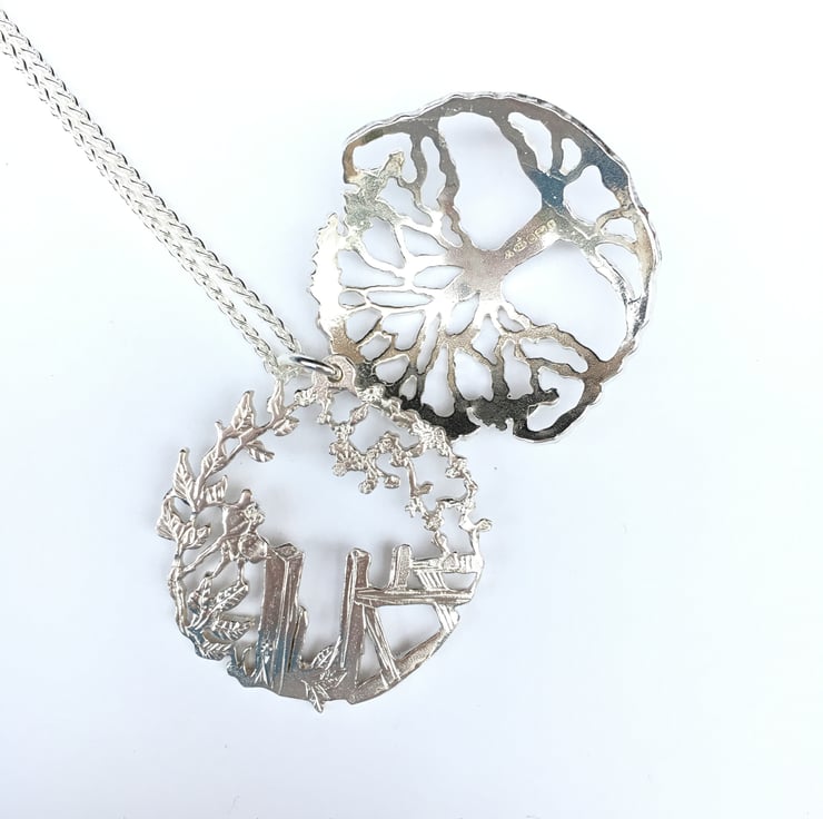 Wolds Way Silver Pendant Necklace - Yorkshire Stile & Roses Tree of Life, based on an walk on the Wolds Way National trail. Featuring the Yorkshire Tree of Life ©2018.