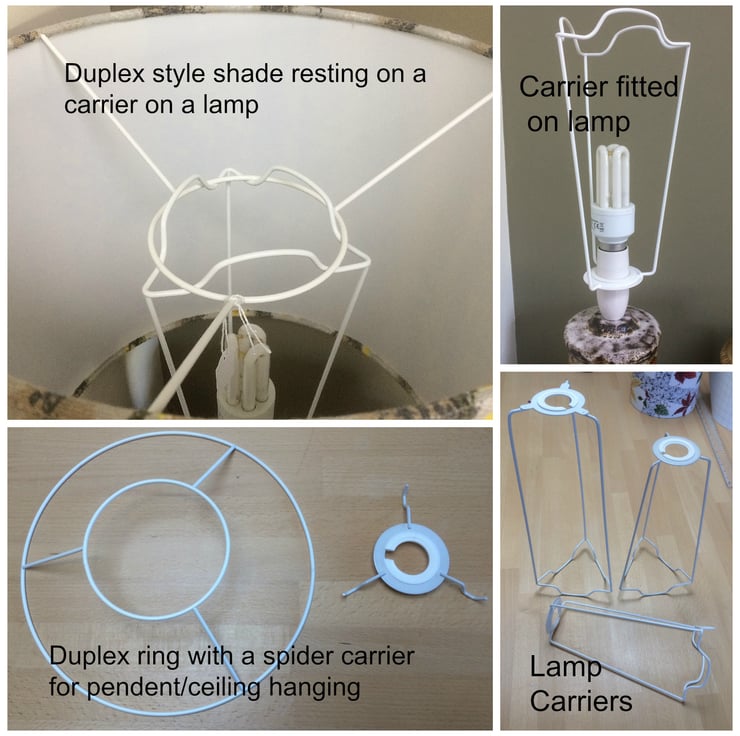 This a DUPLEX style lampshade - which mean is can be used as either pendent or lamp depending on which carrier is used. See last picture for details. Let me know how you want to use it and I will include EITHER a lamp carrier frame of suitable height or a ceiling ' spider ' .