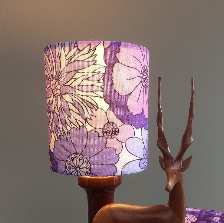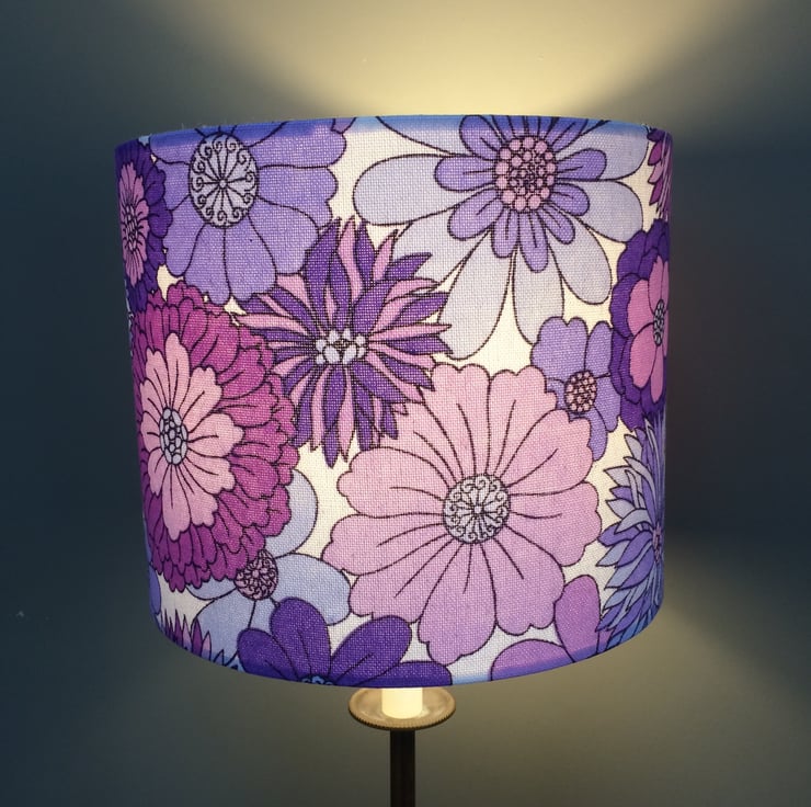 A Flower Power 70s RETRO Lilac and Purple Vintage Fabric Lampshade - so pretty!. When I have an example of this on my craft stall THIS is the one where people say " oh I remember that one - !/my Mum/My Nan - had curtains in that !!! )