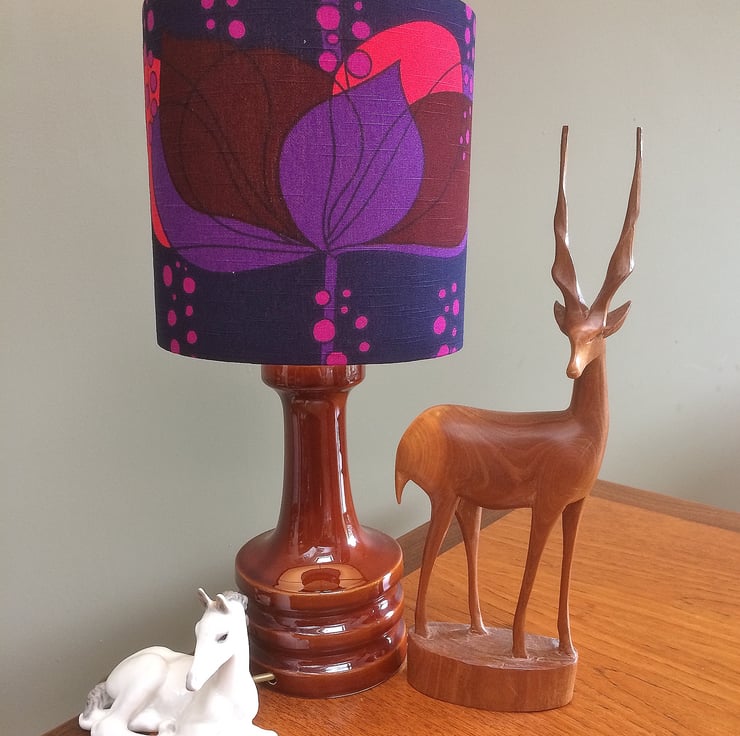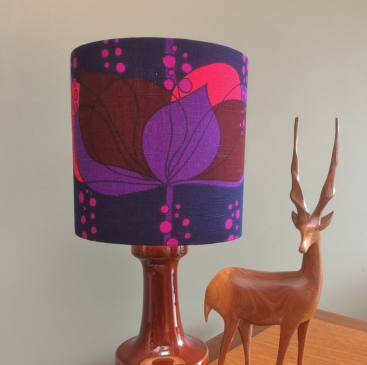 RETRO Purple Lampshade in RARE BORAS Swedish Vintage Fabric - this design is called ' Rio ' by Helene Wadel .