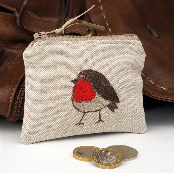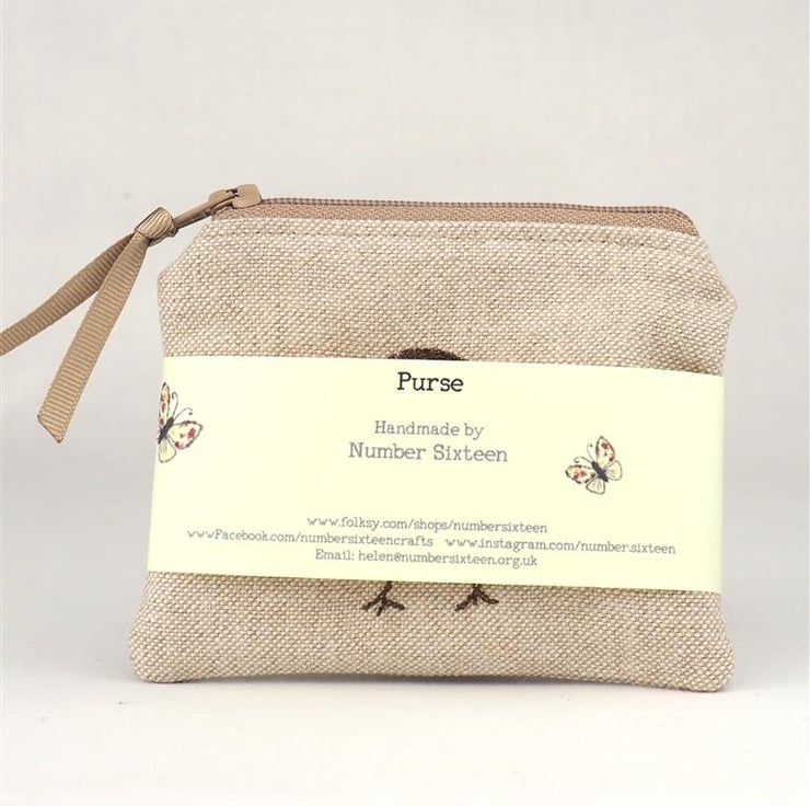 This beautiful handmade purse is made from Linen Look Cotton fabric. The purse is lined with soft cotton and has a zip fastening. It features one of my own unique designs on the front cover and is stitched using the Freehand Machine Embroidery technique.