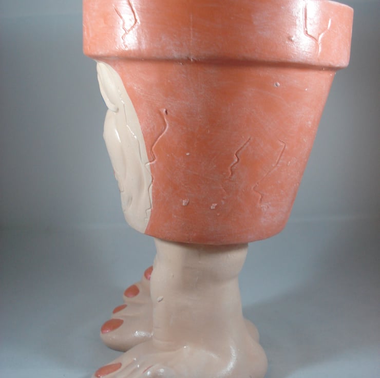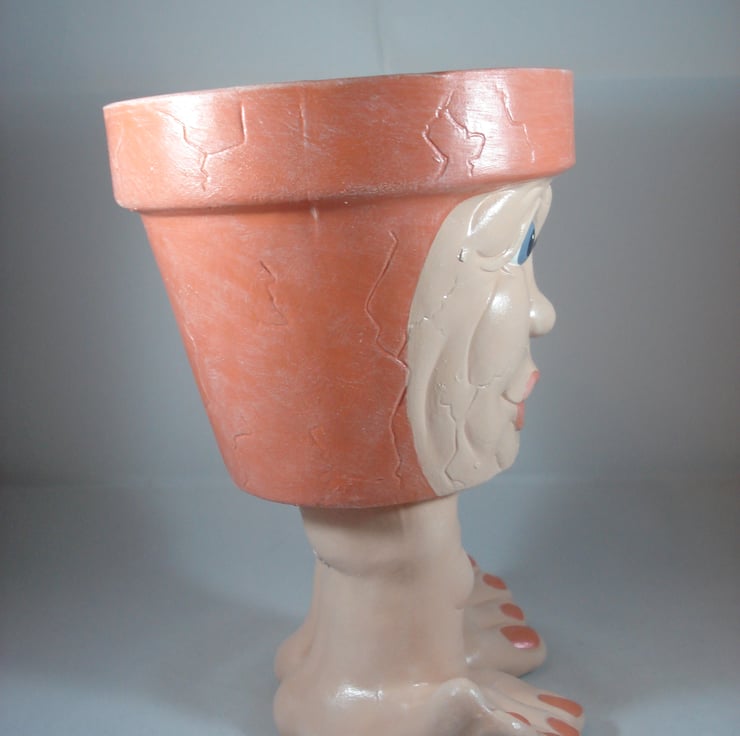 I have for sale a novelty ceramic plant pot, which was hand painted by myself. It is from a range called 'Waddle Pots', this one is in an orange colour. This pot has no drainage holes in the bottom of it, so it could be used indoors or out. This would make a fun and novel addition to anyone's home, patio or garden, or perhaps given as a gift.