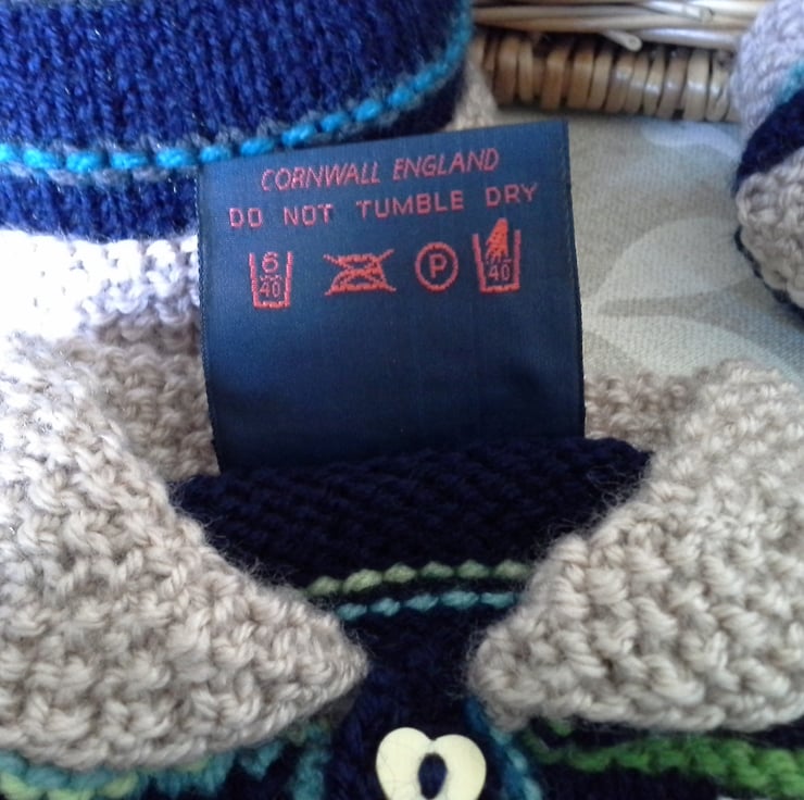 Baby knitwear is designed and hand crafted by Demelza Designs in Cornwall meeting UK baby safety standards, Only branded premuim acylic, acrylic/natural fibre blends or pure natural fibre yarns are used in baby knitwear which conforms to BS984/76 standards.