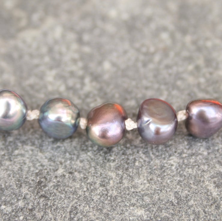 This is a perfect bracelet to wear as a piece of wedding jewellery or as a bridesmaid gift. It would make a great gift as it can easily be worn for many different occasions and can be personalised. The lovely purple tones of the peacock freshwater pearls as well as their naturally uneven surface gives a modern twist to a classical style of jewellery. It is also available with white pearls.