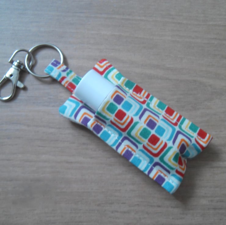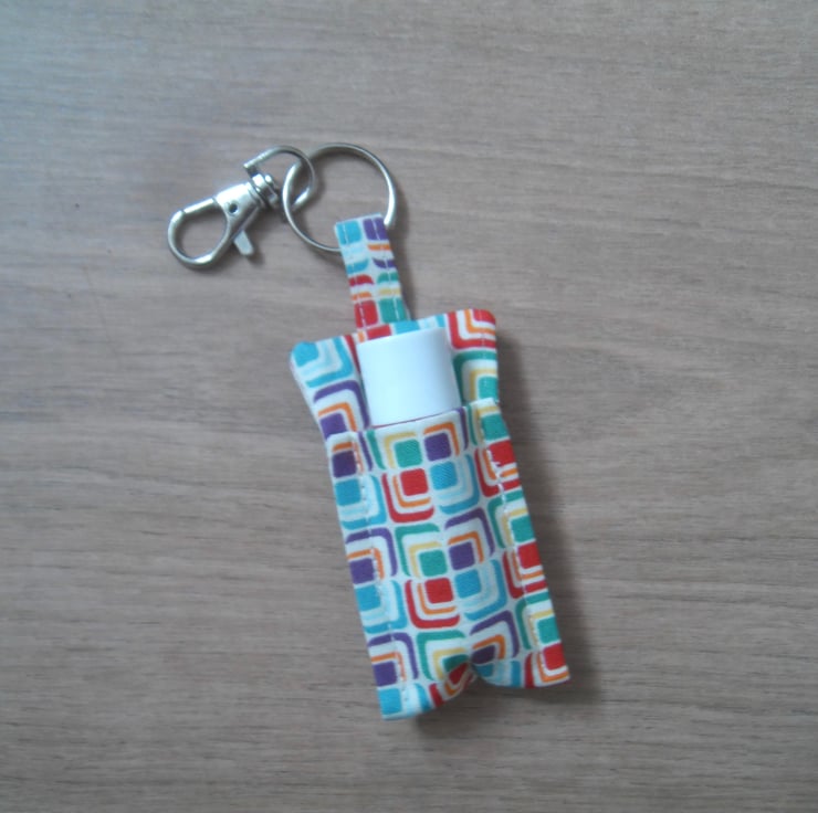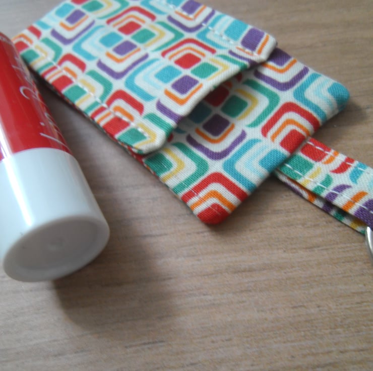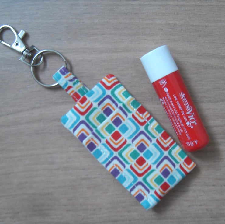 This is a little fabric pouch with a lobster clasp key ring attached, designed to keep your lip balm stick handily clipped to your bag, purse etc.