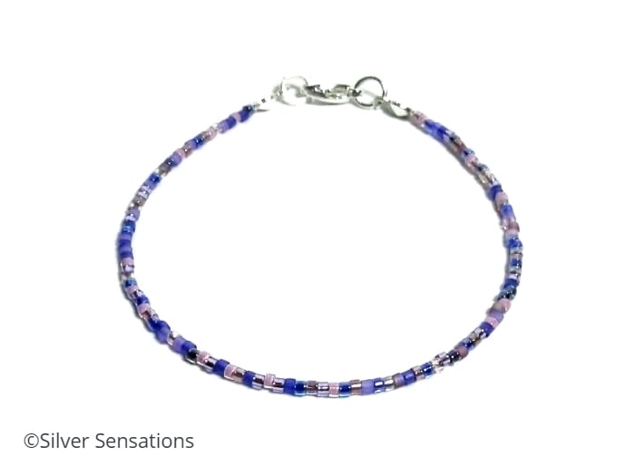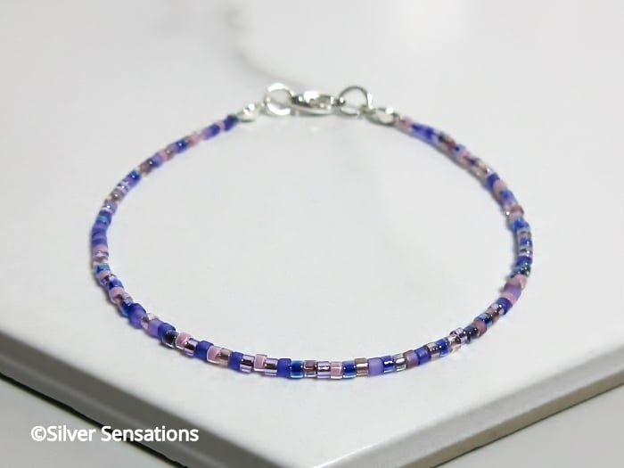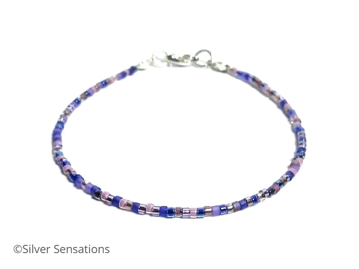 Purple Mix Seed Beads Dainty Boho Anklet, Minimalist Surfer Anklet - 9" - 14"