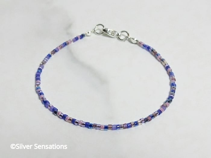 Purple Mix Seed Beads Dainty Boho Anklet, Minimalist Surfer Anklet - 9" - 14"