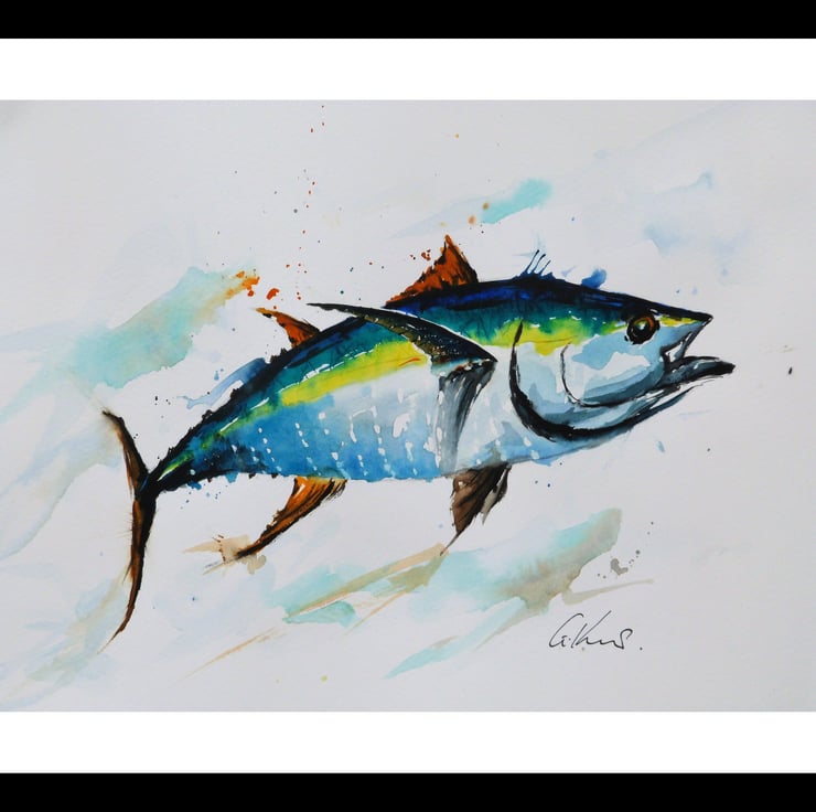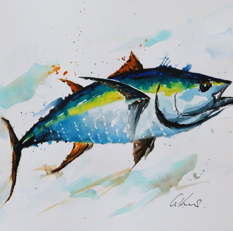 My paintings are inspired by places, memories and feelings. This particular painting is a fun & colourful impressionist piece of a Yellow Fin Tuna.
