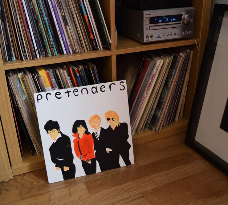 It's 30cm square, the same size as an album cover, is unvarnished acrylic paint and comes signed and dated on the back. It comes unframed as many people like to have them propped up by their record player. Certainly fools visitors, that big wooden album waiting to be played.