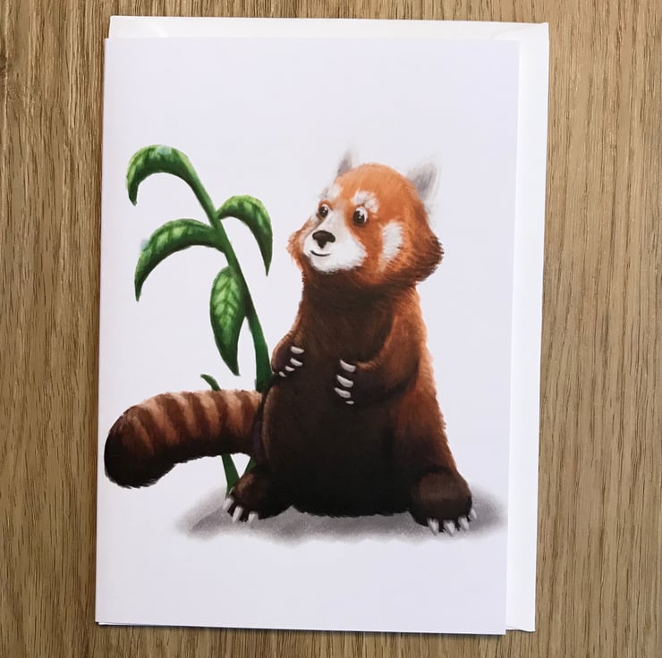 A Red Panda blank greeting card with white envelope by DuffleCat Prints (Damian Case)