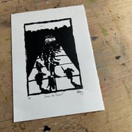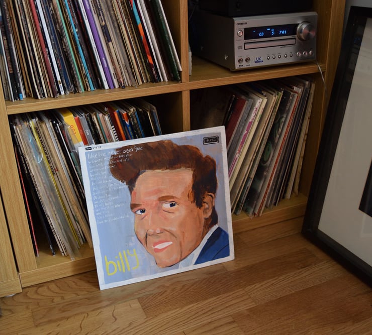 It's 30cm square, the same size as an album cover, is unvarnished acrylic paint and comes signed and dated on the back. It comes unframed as many people like to have them propped up by their record player.